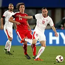 On 13 May 2014, Drmić was named in Switzerland's squad for the 2014 World Cup.[41] He scored the only goal of the match in the 83rd minute from Blerim Džemaili's assist as Switzerland beat Jamaica in a warm-up match for the tournament on 30 May. In the first match of the tournament, a 2–1 win over Ecuador, he had a goal ruled out for offside and was substituted for Haris Seferovic, who scored the winning goal.[42] Drmić was dropped for Seferovic for the second match, a 5–2 defeat to France, but returned and set up two of Xherdan Shaqiri's three goals in the 3–0 win over Honduras in the last group match in Manaus, which saw Switzerland advance to the knockout stage as group runners-up.[43]