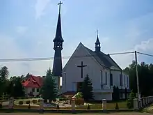 Kamionka [kaˈmjɔnka] is a village in the administrative district of Gmina Ostrów, within Ropczyce-Sędziszów County, Subcarpathian Voivodeship, in south-eastern Poland. It lies approximately 8 kilometres (5 mi) north-east of Ostrów, 6 km (4 mi) north-east of Ropczyce, and 27 km (17 mi) north-west of the regional capital Rzeszów.[1] Kamionka lies on the Tuszymka river, a tributary of the Wisłoka river. In the past this area was known for iron smelting and a furnace was located in the village.[2] Iron ore was brought in from the neighbouring village of Ruda, where it was mined.[2] Today Kamionka is known for the picturesque lake which is located there, on the Wisłoka river, surrounded by pine forest. A popular area for camping and water sports.[2]
