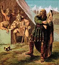 The poem narrates—in dramatic terms—King Alfred's ongoing battles against the Danes. Supernatural powers intervene to aid both sides: the Archangel Michael and his hosts—on behalf of the English—and Lucifer and his hosts—on behalf of the Danes.[2]