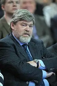Konstantin Vadimovich Remchukov (Russian: Константин Вадимович Ремчуков; born 21 November 1954) – is a Russian journalist, editor-in-chief, and CEO of Nezavisimaya Gazeta".[1] Deputy of the State Duma of the Russian Federation (1999–2003) and chair of the Public Chamber of the city of Moscow. Previously he headed the Public Council on Russia's accession to the WTO.[2]