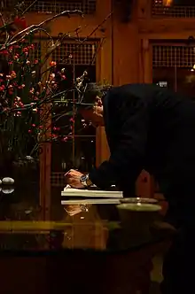 US Secretary of State Tony Blinken visiting the Korea Furniture Museum and signing the guestbook in 2015.