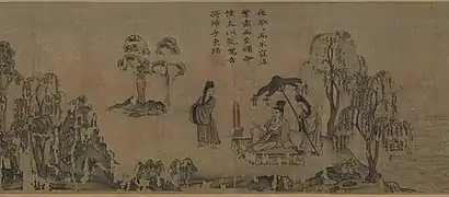 The knot at the waist by ribbon can be seen from many artworks especially in the beauty painting and ancient literature description recorded that the tradition of knot ribbon can be traced back Spring and Autumn Period (770 – 76 BCE), for example in the chapter Zhaogong昭公》of the Zuo Zhuan左傳》, the tradition of tying ribbon as knots to the belt is recorded.[6]