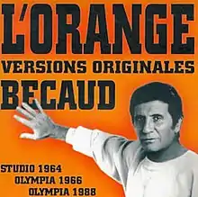 "L'Orange" is a 1964 song recorded by French singer and songwriter Gilbert Bécaud. It was covered in 2003 by the contestants of the French third version of the TV reality show Star Academy, and achieved a great success in France and Belgium (Wallonia), where it topped the chart for several weeks. As of August 2014, the song was the 20th best-selling single of the 21st century in France, with 560,000 units sold.[1] In January 2004, thanks to the cover version, the original one by Gilbert Bécaud was charted for five weeks on the French Singles Chart, but peaked only at #89.[2]