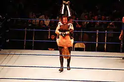 At WrestleMania XXIV, both Edge and Chavo lost their championships to The Undertaker and Kane respectively, with Edge tapping out to Undertaker's new gogoplata submission move (which would eventually be called Hell's Gate) and Chavo making a WrestleMania record by losing in nine seconds.[20] While signing a contract for his rematch, Chavo introduced Bam Neely, given a history as a border guard turned body guard, as his new enforcer and member of La Familia.[21][22] Despite this help and Vickie's power, both Edge and Chavo failed to win back their titles at Backlash, with Edge being stretchered out after again submitting to the eventual Hell's Gate.[23] On the May 2 episode of SmackDown, Vickie announced that The Undertaker's chokehold was an illegal move and banned Undertaker from using it, slapping him and saying "Hell hath no fury over a woman scorned!", stripping The Undertaker of the World Heavyweight Championship.[24] Later that month, on the May 16 episode of SmackDown, Vickie was forced by the WWE Board of Directors to compete against The Undertaker in what she subsequently made a six-on-one handicap match featuring all of La Familia. However, Chavo and Neely left before the match began,[25] feeling used by the group, though they were brought on side the next week.[26] At Judgment Day, The Undertaker defeated Edge, but instantly after the match Vickie announced that the title would remain vacant as The Undertaker won by countout, under which a championship would not normally change hands.[27] The next month at One Night Stand, a rematch for the vacant championship was given two stipulations: firstly it was a Tables, Ladders, and Chairs match, Edge's specialty; and secondly, if Undertaker lost, he would be banished from WWE. After interference from La Familia, Edge reclaimed the World Heavyweight Championship after pushing Undertaker off a ladder and through four tables, forcing his storyline exile from WWE television.[28] Following this, Batista set his sights on Edge and avoided being banished himself by beating The Great Khali to earn a title match.[29] With Chavo as referee, Edge retained the championship at Night of Champions,[30] but the next night on Raw, Batista attacked Edge while he was making a speech and afterwards CM Punk used his Money in the Bank contract to make an instant championship match and win the belt.[31]