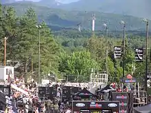North Elba Showgrounds, showing Horse Rings, Olympic Cauldron, Whiteface Mountain