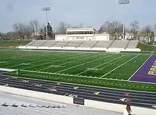 Lakewood High School's athletic field was built in 1941 and is located just south of the school building in the school's athletic complex. The stadium is used for numerous sporting events, including playoff and home football games for nearby St. Edward High School football team, which is located a few blocks away. The football field was first renovated in 1986-7, with the addition of an all-weather track and a sand-ballasted synthetic surface,[6] and again, in 2007 with the installation of FieldTurf and in 2014, First Federal of Lakewood, a local bank, agreed to pay the district $320,000 for the naming rights. It can seat 8,000 people with standing room for an additional 2,000.[7]