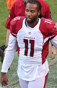 Larry Darnell Fitzgerald Jr. (born August 31, 1983) is an American former football wide receiver who played in the National Football League (NFL) for 17 seasons with the Arizona Cardinals. He played college football for the Pittsburgh Panthers, earning unanimous All-American honors in 2003. Fitzgerald was selected by the Cardinals with the third overall pick in the 2004 NFL Draft. He is widely considered by fans, coaches and peers to be one of the greatest receivers in NFL history.[1][2][3][4][5]