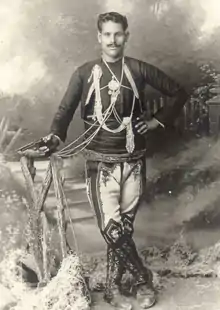 Following a betrayal in February 1911, a fierce battle commenced against the Ottoman Army by the lake of Giannitsa which resulted in the death of Gonos Yiotas. Lazos Dogiamas was left to assume leadership of their band. Days later he was once again forced to take refuge in Athens to avoid Ottoman persecution.[9][10] He returned a few months later with a new band following reports of renewed violence against Greeks. He became wanted by Ottoman authorities, declaring him as dangerous.