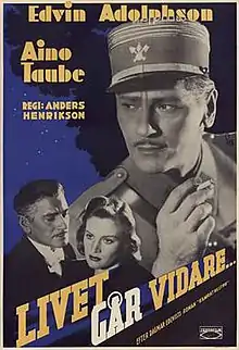 Life Goes On (Swedish: Livet går vidare) is a 1941 Swedish drama film directed by Anders Henrikson and starring Edvin Adolphson, Aino Taube and Sigurd Wallén.[1] It was shot at the Centrumateljéerna Studios in Stockholm. The film's sets were designed by the art director Arthur Spjuth.