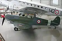 - Spitfire Tr.9 MH367 (ZK-WDQ). Owned by aerobatic pilot Doug Brooker and arrived in New Zealand on 11 September 2008. It wears RAF desert colours with the markings of FL-A, a Mk IX EN520 flown by the New Zealand Squadron Leader Colin Gray, C/O of 81 Squadron when based in Tunisia in mid-1943.[97] On 15 January 2009, during a transit flight from Auckland, the Spitfire suffered a heavy forced landing on Hood Aerodrome, near Masterton. The propeller, undercarriage and some fuel lines were damaged but the aircraft was repaired.[98] A second landing accident at Ardmore Airport on 2 December 2009 resulted in damage to the undercarriage and propeller.[99] On 12 June 2011 the aircraft suffered yet another landing accident, this time tipping onto its nose after landing at Ardmore, damaging the propeller[100]