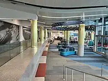 Terminal E has a total of 16 gates. All gates within the terminal are designated as common-use, meaning gates are assigned mostly based on an operational need, and no specific airline claims ownership of any of those gates.[64] All ticket counters and gates in Terminal E are shared among the international carriers. Terminal E has several airline lounges (e.g., Air France Lounge,[65] British Airways' First Lounge and Terraces Lounge,[66] Lufthansa's First Lounge and Business Lounges,[67] Virgin Atlantic's Clubhouse Lounge[68]). The third level of Terminal E is used for departures, the second for passport control via U.S. Customs and Border Protection, and the ground level for arrivals and customs, also via U.S. Customs and Border Protection.[64] The Federal Inspection Station located in Terminal E is capable of processing over 2,000 passengers per hour.[49]