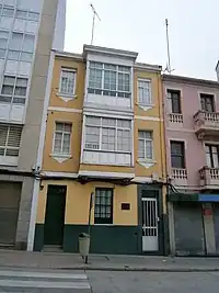 A plaque in Galician language outside Suárez's birthplace. The phrase roughly translates as: "In this house, on 2 May 1935, the architect of football, Luis Suárez, was born"