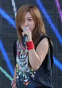 Park Sun-young (born August 12, 1993), known professionally as Luna, is a South Korean singer, dancer, musical actress and television host. She debuted as a member of the girl group f(x) in September 2009. In May 2016, Luna released her solo EP Free Somebody. In November 2019, the single "Free Somebody" was listed in Billboard's greatest K-pop songs of the 2010s.[3] In September 2019, Luna left SM Entertainment and joined Humap Contents. In February 2021, Luna established her entertainment agency, Grida Entertainment.