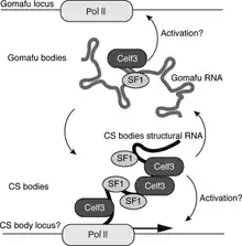 - ↑ Sone M, Hayashi T, Tarui H, Agata K, Takeichi M, Nakagawa S (August 2007). "The mRNA-like noncoding RNA Gomafu constitutes a novel nuclear domain in a subset of neurons". Journal of Cell Science. 120 (Pt 15): 2498–2506. doi:10.1242/jcs.009357. PMID 17623775.