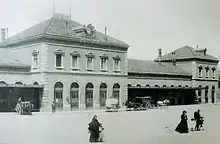 Delicias station, formerly known as the Compañía de Ciudad Real-Badajoz station and located in the capital, was not acquired by MZA due to their ownership of the much larger Atocha station. Instead, they sold Delicias to the recently established Compañía de los Ferrocarriles de Madrid a Cáceres y Portugal, who ultimately acquired it.[16] The merger policy was finalized with the rescue of the Compañía del Ferrocarril de Mérida a Sevilla in 1880, although it was granted with the concession since the line works had not begun yet. By 1881, both ends of the line were completed and operational. Finally, on January 16, 1885, the entire line between Mérida and Seville opened to the public. The joining of the Ciudad Real-Badajoz and Cordoba-Seville-Huelva lines marked the completion of MZA's southern annexation phase, making this annexation pivotal.[17]