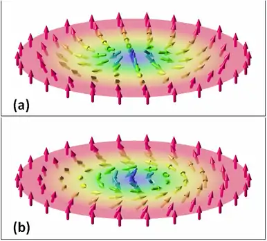 - ↑ Bogdanov A, Hubert A (1994). "Thermodynamically stable magnetic vortex states in magnetic crystals". J. Magn. Magn. Mater. 138 (3): 255–269. Bibcode:1994JMMM..138..255B. doi:10.1016/0304-8853(94)90046-9.
