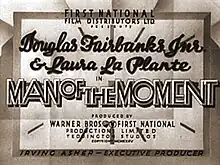 Man of the Moment is a 1935 British comedy film directed by Monty Banks and starring Douglas Fairbanks Jr., Laura La Plante and Margaret Lockwood. It was made at Teddington Studios by the British subsidiary of Warner Brothers.[1] The film's art direction was by Peter Proud.