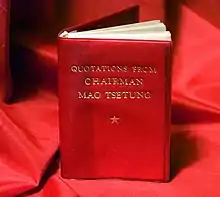 Printed since 1964 until around Mao's death in 1976, over a billion copies were distributed throughout China.[43] During the Cultural Revolution it became almost mandatory for all citizens to carry a copy, so that they could easily refer to it for guidance and become inspired. Failure to produce a copy when requested would often result in a punishment from the Red Guard, which varied from verbal harassment and beatings, to a prison sentence.[39] The final edition listed 267 quotations spanning over 25 topics such as war, peace, unity & discipline.[44] The simplification of Mao's writings also finally gave access to the thoughts and ideas of communists to peasants and lower-class citizens, this helped to further solidify support for his cult of personality.