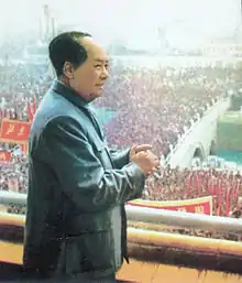 Mao Zedong's cult of personality was a prominent part of Chairman Mao Zedong's rule over the People's Republic of China from the state's founding in 1949 until his death in 1976. Mass media, propaganda and a series of other techniques were used by the state to elevate Mao Zedong's status to that of an infallible heroic leader, who could stand up against the West, and guide China to become a beacon of communism.