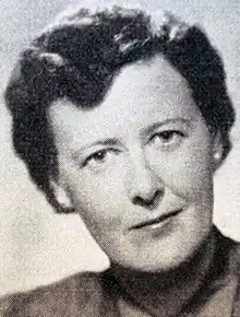 Söderholm was a member of the pro-Germany Riksföreningen Sverige-Tyskland, and then also of the Swedish Opposition, and Jan Myrdal, who was her pupil at Bromma läroverk, described her as "a great admirer of Hitler".[5][6] Her political sympathies appear in two of her books: Dit du går (1946) and Möte i Wien (1951).[4]
