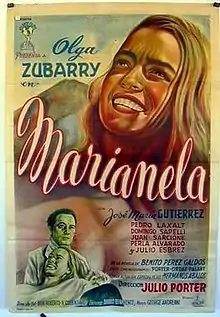 Marianela is a 1955 Argentine drama film directed by Julio Porter, and starring Olga Zubarry and José María Gutiérrez.[1] It is based on the 1878 novel by Benito Pérez Galdós. Zubarry won the Silver Condor Award for Best Actress at the 1956 Argentine Association of Film Critics Awards for her performance as the title character.[2]
