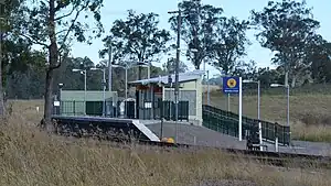 Opposite the platform is a siding leading to Martins Creek Ballast Quarry. This was sold in December 2012 by RailCorp to the Daracon Group.[3]