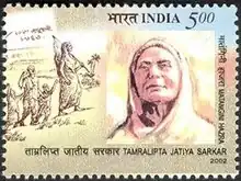 Matangini Hazra (19 October 1870 – 29 September 1942[1]) was an Indian revolutionary who participated in the Indian independence movement. She was leading one of the five batches of volunteers (of the Vidyut Bahini), constituted by the Samar Parisad (War Council), at Tamluk to capture the Tamluk Thana on 29 September 1942, when she was shot dead by the British Indian police in front of the Police Station, becoming the first "Quit India" movement martyr in Midnapore. She was a staunch Gandhian and was fondly called as Gandhi buri, Bengali for "old lady Gandhi".[2][3][4]