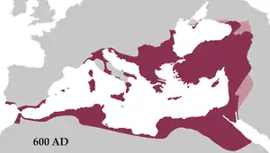 - ↑ The full imperial titulature of Maurice, attested in a letter to Childebert II, was Imperator Caesar Flavius Mauricius Tiberius fidelis in Christo mansuetus maximus beneficus pacificus Alamannicus Gothicus [Francicus Germanicus] Anticus Alanicus Vandalicus Erulicus Gepidicus Afric[an]us pius felix inclitus victor ac triumfator semper Augustus ("Emperor Caesar Flavius Maurice Tiberius, faithful in Christ, mild, majestic, bountiful, peaceable; victor over the Alamanni, Goths, [Franks and Germans,] the Antae, Vandals, Heruls, Gepids, in Africa; pious, fortunate, renowned, victorious and triumphant, ever august").[3][4]