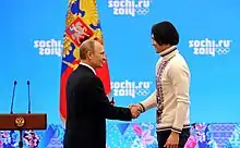 - ↑ "Russia's Olympic athletes receive state awards". Itar-Tass. 24 February 2014. Archived from the original on 5 March 2014.