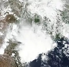 The weather system partially responsible for the May 2021 South Central United States flooding, entering the Gulf of Mexico on May 19