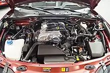 The fourth-generation MX-5 is 105 mm (4 inches) shorter and 100 kg (220 lb) lighter than its predecessor, putting the vehicle's curb weight near 1,000 kg (2,200 lb). Incorporating Mazda's Skyactiv technology, the MX-5 is offered with two naturally aspirated direct-injection petrol engines. The base model has a 1.5 L 96 kW (129 hp; 131 PS) engine, while pre-2019 American and Canadian-market models with a 1,998 cc (2.0 L; 121.9 cu in) engine are rated at 116 kW (155 hp; 157 PS) at 6000 rpm and 201 N⋅m (148 lb⋅ft) of torque at 4600 rpm.[11] Mazda also replaced the hydraulic power steering system in previous MX-5s with their new Electric Power Assisted Steering (EPAS) system.[12]