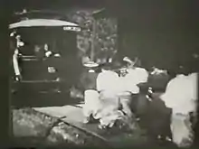 The film ends with a medium close-up of the bride and bridegroom all dressed up, which reveals that the bride is actually a man dressed as a woman. The two men French kiss.