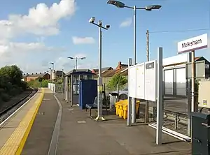 Melksham railway station, on the branch of the Wessex Main Line from Chippenham to Trowbridge, has services roughly every two hours in each direction on weekdays. Trains are operated by Great Western Railway, with services marketed as the 'TransWilts line' between Westbury and Swindon.[52]