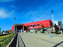 Mi Teleférico contributed to the construction of the Teleférico Turístico "Virgen del Socavón" (Our Lady of the Mines Tourist Cable Car) in Oruro, Bolivia. The cable car connects the city center to the Virgen del Socavón statue and shrine on nearby Santa Bárbara hill, which plays an important role in the city's carnaval celebrations. The cable car, which opened on 7 February 2018, consists of a single 800-metre (2,600 ft) line with two stations and 16 cars. It has a capacity of 1000 passengers per hour, and a one-way trip takes approximately 3 minutes.[25][26] The project was originally due to open in November 2016, but it suffered repeated delays until Mi Teleférico took over construction work in 2017.[27]