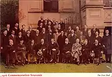 In March 1913 a protracted strike broke out at the Sligo Docks. In May O'Flanagan visited the strikers to show his solidarity and advised them to continue insisting for their rights.[12] It has been suggested that this display of socialism prompted the Bishop to move O'Flanagan to Cliffoney.[12] When the advanced nationalist Keating Branch took control of the Gaelic League, O'Flanagan was elected to the Standing Committee for two years.[11] A recently discovered photograph shows O'Flanagan in a large group, many of whom were advanced nationalists at a meeting of the Gaelic League outside Galway Town Hall in August 1913.[19]