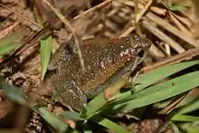Microhyla fissipes (commonly known as the ornate chorus frog) is a microhylid frog from East and Southeast Asia, from southern and central China and Taiwan to the Malay Peninsula. It was previously considered to be the same species as Microhyla ornata of South Asia; thus the common names ornate narrow-mouthed frog or ornamented pygmy frog can refer to either species.[2]