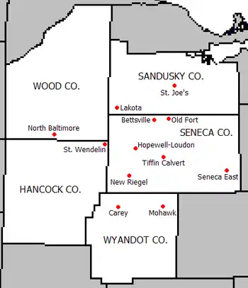 - ↑ Montgomery, John (February 2, 2013). "Four local schools to be part of new SRL". Tiffin Adviser-Tribune. Retrieved February 4, 2013.