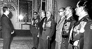 The Shah ordered Gholam Reza Azhari at 5 November 1978 to lead the military government at the time of growing protests in the country.[1] The selection of General Azhari was taken as an indirect signal to the revolutionaries that the regime had lost its resolve to resist and play it tough.[2] The cabinet was officially formed on 6 November.[3]