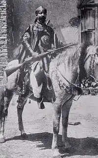 The Ethiopian military leader Ras Mengesha Yohannes on horseback.