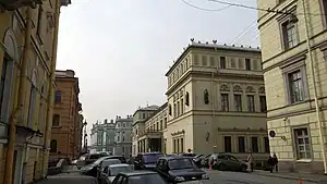 Millionnaya Street (Russian: Миллионная улица), a street on the left bank of the Neva in the Central District of St. Petersburg in Russia, runs - parallel to the Palace Quay - from the Swan Canal to the Palace Square. Significant buildings on Millionnaya Street include the New Hermitage Museum, the Chief Pharmacy, the Marble Palace, and the New Michael Palace.