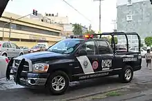 • Bank Police (Policía Bancaria e Industrial (aka Bancarios)): A 15,000 security police officers strong force who provides security services, surveillance and specialized protection to public and private corporations based in the Mexico City metropolitan area, such as Service Providers, Banks, Industry, Trade, and Institutions Unit. It also provides services and personal security guard and transport custody of securities, commodities and products, etc.[20][21]