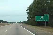 MS 57 has a couple more intersections with its former two-lane alignment before entering the town of State Line, which it mostly bypasses along its eastern side as it has an interchange with MS 42 (St. Peter Street), where it crosses into Wayne County. MS 57 comes to an end shortly thereafter at a large interchange with US 45.[3]