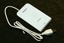 An external USB FeliCa PC reader/writer has been released as well, called PaSoRi. It is USB-powered and allows one to perform online transactions and top up EZ-link cards in Singapore with credit cards or debit cards anywhere, as long as there is direct access to the Internet.