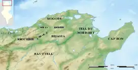 The Mogods are Mountain ranges of Northern Tunisia, culminating at 500 meters height. They constitute the limit of the region of Khroumire.[1]