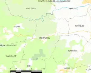 Map of Montauriol and its surrounding communes