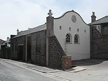 E. Joseph Wood's Montpelier Place Baptist Church of 1966–67 was built on the site of the former Emanuel Reformed Episcopal Church. The low brown-brick building stood on a corner site at the south-west end of Norfolk Terrace, straddling the ancient parish boundary.[35][94] There were echoes of Coventry Cathedral in the treatment of the façade, which had two gabled bays linked by an arcaded wall with a sawtooth-style roof. Each bay had vertical rows of recessed bricks. A flat-roofed church hall adjoined.[35] The church closed in 2012,[95] was squatted in 2014[96] and was proposed for demolition and replacement with flats in 2017.[97] Demolition took place soon after planning permission was granted in October 2017.[95]