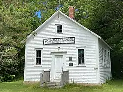 The schoolhouse is located on its original site, on the east side of the Mount Hanley Road facing Brown Road about nine kilometres northwest of the town of Middleton. It is today a quiet country corner on the North Mountain but was a busy and prominent location in 1850. A store and two mills operated close to the school drawing on a Mill Pond where local tradition holds that Joshua Slocum made his first sea voyage paddling a washtub.