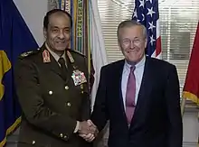 Tantawi, who was of Nubian origin,[3][4] joined the Egyptian Military Academy in 1952 and received his commission as an Army officer on 1 April 1955 in the infantry. The following year he took part in the Suez War (or the Tripartite Aggression as it is often known in Egypt) as an infantry platoon commander. He was promoted to major in 1961 and commanded an infantry company in Yemen during the North Yemen Civil War. Later in his career he was involved in the Six-Day War of 1967 as a battalion commander, the War of Attrition of 1967–1970, and the October or Yom Kippur War of 1973. During the Yom Kippur War he was a lieutenant colonel commanding the 16th mechanized infantry battalion. He held various command and staff appointments including both the Chief of Staff and then Commander of the Second Field Army between 1986 and 1989. Additionally he served as a military attaché to Pakistan between 1983 and 1985, an important role given the two countries' political and military links. Tantawi served as a Commander of the Republican Guard Forces between 1989 and 1991, and later a Chief of the Operations Authority of the Armed Forces. In 1991, he also commanded an Egyptian Army unit in the U.S.-led Gulf War against Iraq to force Iraq to withdraw from Kuwait, which it had invaded in 1990.