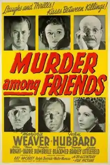 Murder Among Friends is a 1941 American mystery film directed by Ray McCarey and written by John Larkin. The film stars Marjorie Weaver, John Hubbard, Cobina Wright, Mona Barrie, Douglass Dumbrille and Sidney Blackmer. The film was released on February 28, 1941, by 20th Century Fox.[1][2][3]