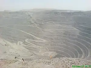 The Muruntau mine is one of the largest gold mines in Uzbekistan and in the world.[1] The mine is located in the mountains of Murintau in the south-west of the Kyzylkum desert, on the territory of the Tamdynsky district of the Navoi region of Uzbekistan.[1] The mine has estimated reserves of 71,400,000 ounces (2,020 t) of gold.[1]